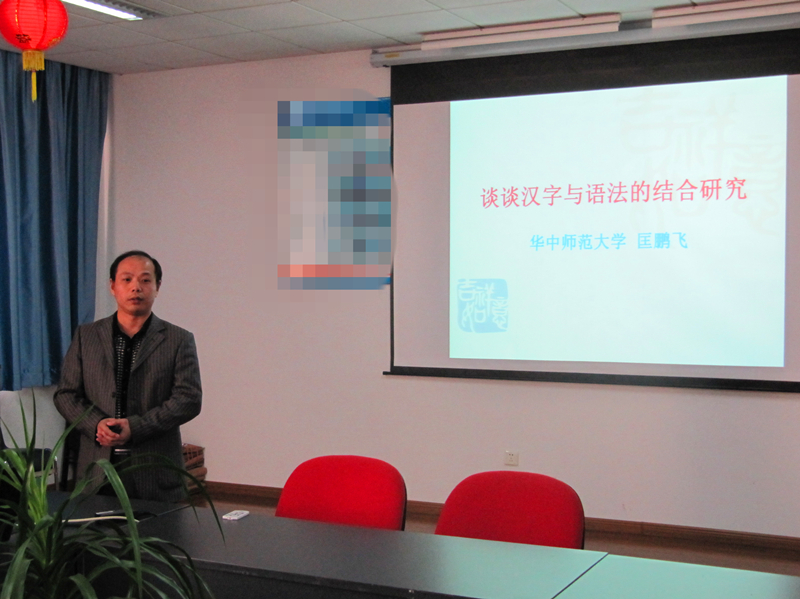 11月23日下午,应文学院邀请,华中师范大学语言与语言教育研究中心副主任、博士生导师匡鹏飞教授在我校文心楼301做了一场题为“谈谈汉字与语法的结合研究”的学术讲座。讲座由文学院院长刘顺主持,文学院部分老师参加。