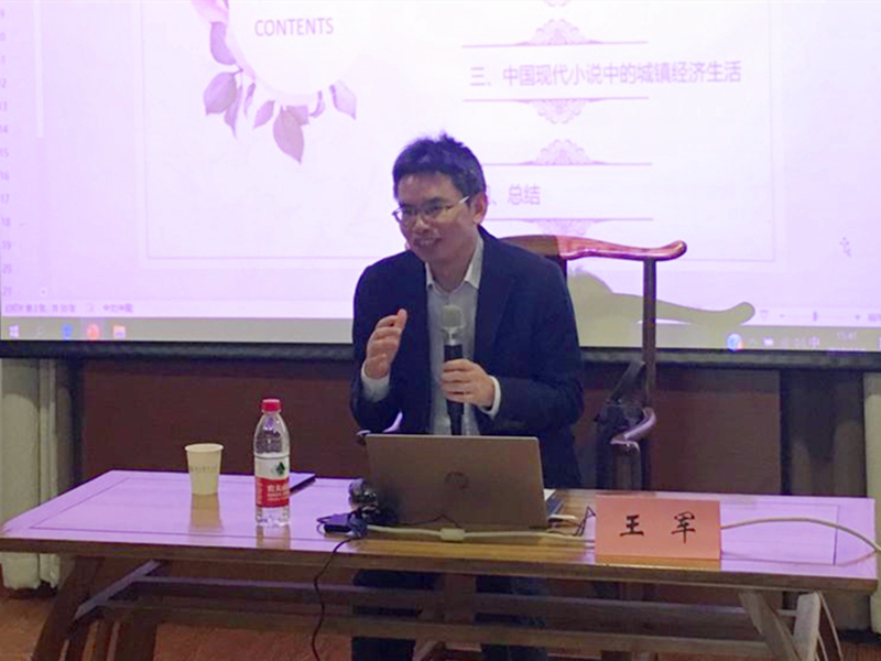 随后,王军通过列举个人以及学生的研究统计成果,展示了中国现代小说中的城镇经济生活。他向同学们分享了《月下小景》和《边城》中景色描写的片段,突出表现乡土文学和小城镇文学的特点。