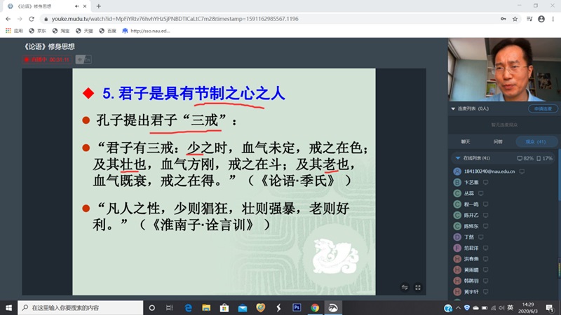 6月3日下午,我们有幸请到文学院的张成进老师在南审直播平台为大家带来“《论语》修身思想”这一精彩讲座,从修身这一方面来解读《论语》这一经典。