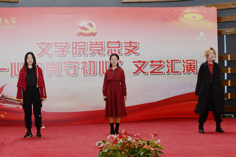 在伟大的中国共产党即将诞辰一百周年、中国人民志愿军抗美援朝出国作战七十周年和“一二•九”学生爱国运动八十五周年之际,2020年12月9日,文学院党总支在大学生活动中心隆重举行“一心向党守初心”文艺汇演,以此回顾党的奋斗历史,讴歌党的光辉业绩,坚定中华民族伟大复兴的信念,全体党员教师和百余名学生参加了此次活动。