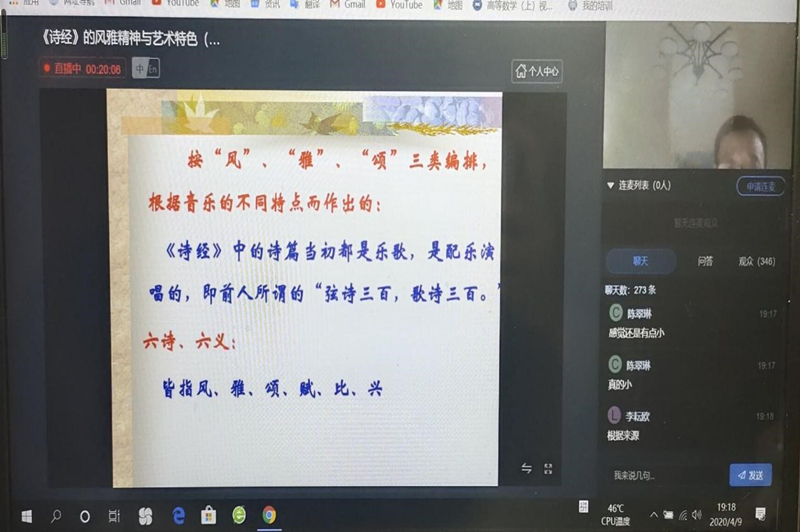 4月9日晚,泽园书院邀请文学院施常州老师通过线上直播平台为同学们带来一场《诗经》赏析的讲座。