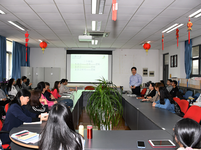 5月12日,南京大学博士生导师王克喜教授应邀在文心301会议室作了一场题为“语言是如何影响逻辑”学术讲座,讲座由文学院院长刘顺教授主持,文学院师生参加。