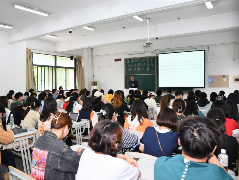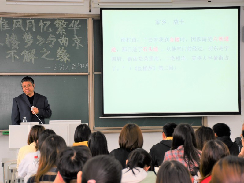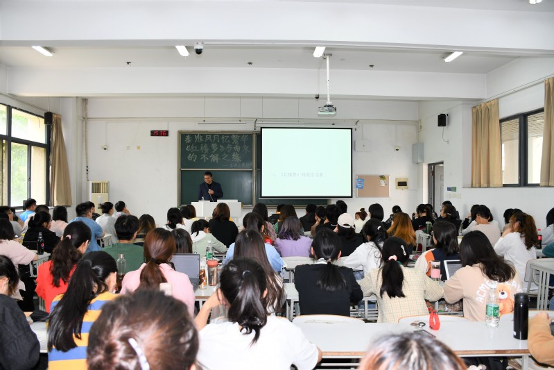5月17日,南京大学博士生导师苗怀明教授应邀在敏知203做了一场题为“秦淮风月忆繁华--- 红楼梦与南京不解之缘”,讲座由文学院院长刘顺教授主持,文学院师生参加。