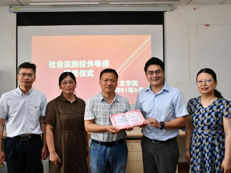 报告结束后,文学院聘请朱桢担任社会实践校外导师,文学院党总支书记、院长刘顺主持会议,并希望朱桢积极参与到学院及校友组织的各项活动中,为文学院在校学生的技能学习、社会实践等内容予以指导,建言献策。