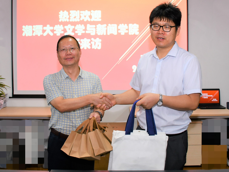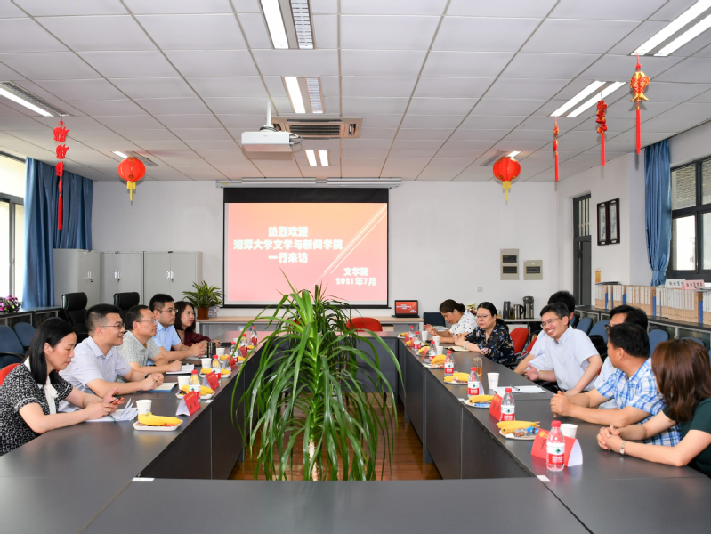 7月7号下午,湘潭大学文学与新闻学院雷磊院长、资义平书记、宋德发副院长、刘晓丽副院长和田华副院长等人应邀来我院进行学科调研与交流活动。此次活动由文学院副院长朱军教授主持,文学院刘顺教授、王军书记、洪涛副院长、龚玉兰副院长等人参加。