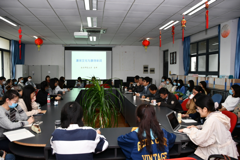 最后,高峰教授分析了部分杜诗和易安词的韵律并现场深情吟唱这些作品,让同学们直观地感受到诗词的情感和节奏,尤其是词“别是一家”的独特魅力。