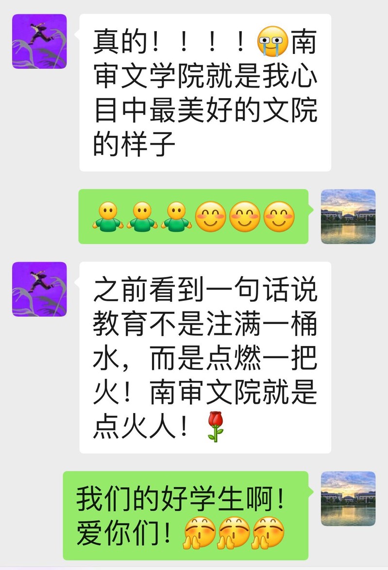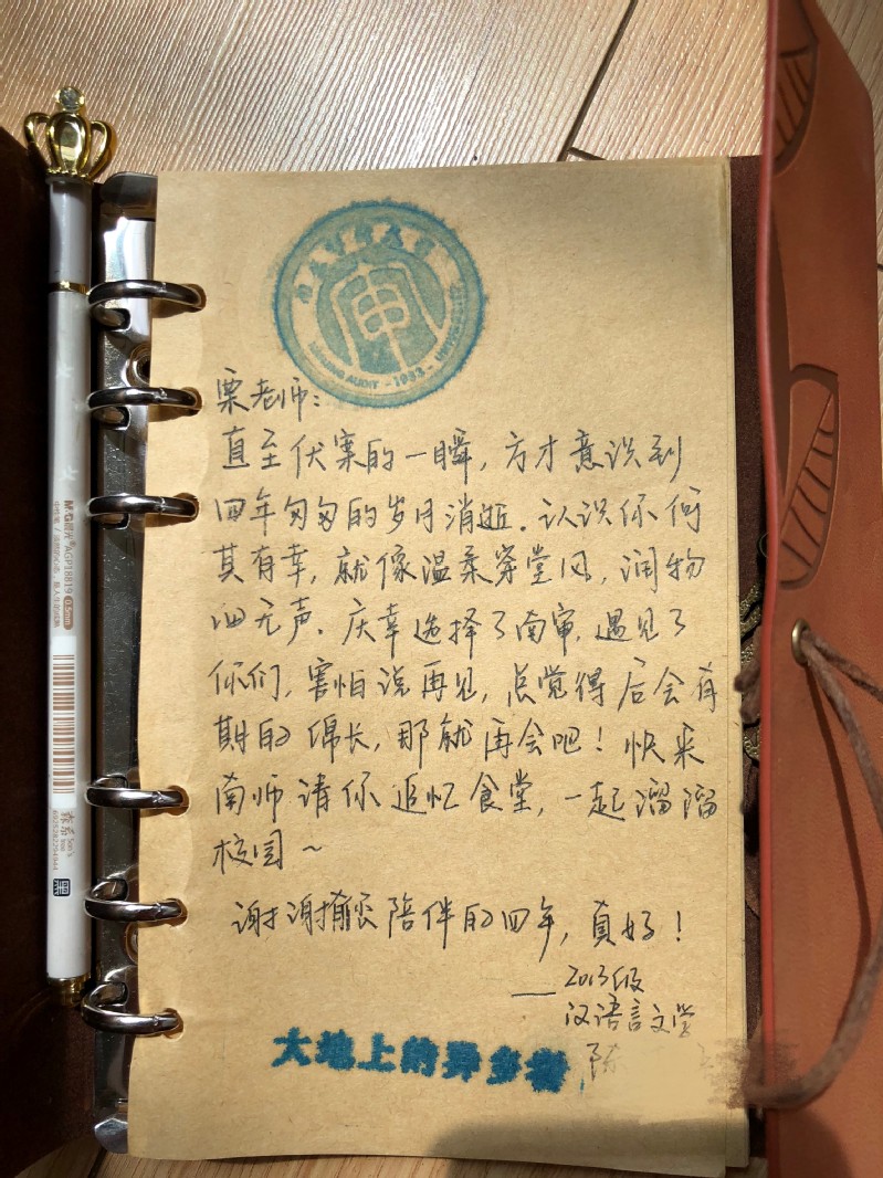 像这样小故事其实还有很多很多,栗老师在和同学们的相处中,建立了一条条纽带,她用自己独特的方式,温暖着文学院的学子们,在未来很多幽暗逼仄的时刻,这些琐碎温馨的小事就是我们逃脱的绳索。