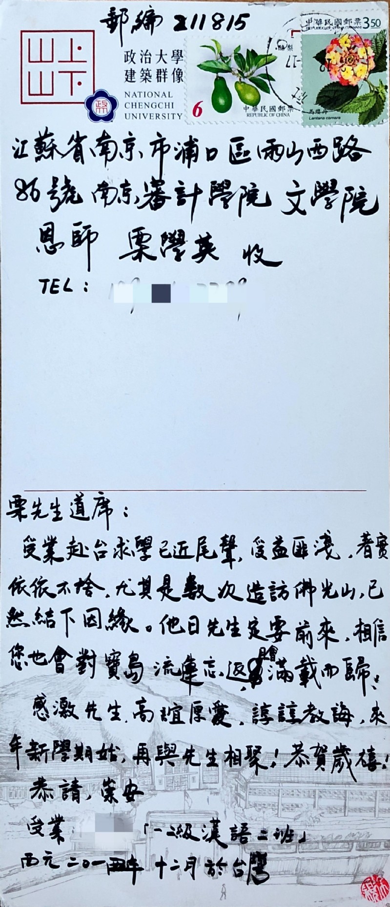 走在南京审计大学的小路上,看到一簇簇的樱花吐蕾,我就会联想到栗学英老师温和的姿态,她也许就在某株婉约的花树后,笑眯眯的瞳仁里倒映着湖里游动的小鸭。早春天气鲜活明媚,而这一切都不及,她眼中的万籁天地。
