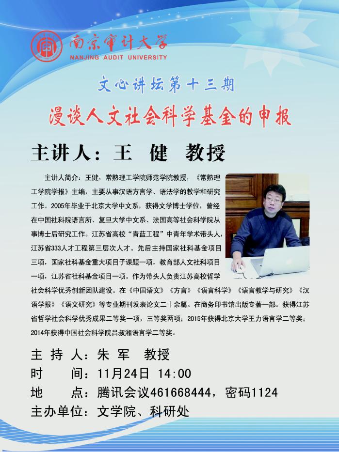 文心讲坛第13期-常州理工学院王健教授