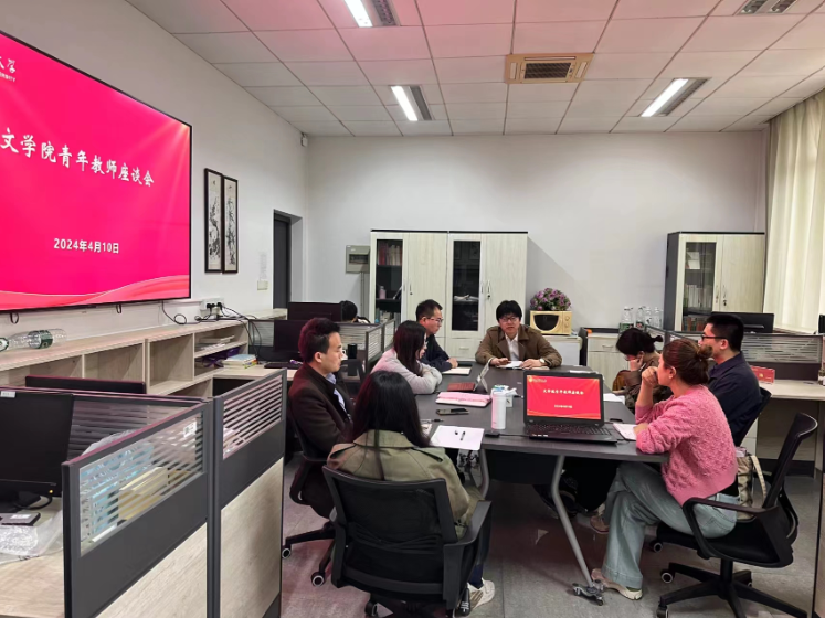 4月10日下午,文学院青年教师座谈会在文心楼308会议室举行。朱军院长与文学院7位青年教师就教学、科研及个人发展等问题进行座谈。