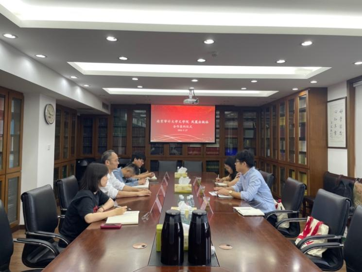 2024年9月27日上午,为更有效解决学生就业问题,提高毕业生的就业质量,稳步高效地推进就业工作,文学院朱军院长、李佳老师、高惠老师一行访问了凤凰出版社,与社长吴葆勤、副总编辑樊昕,古籍学术编辑室郭馨馨主任、许勇副编审进行了深入交流,并举行了合作签约仪式。