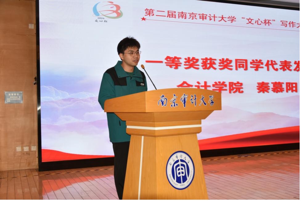 一等奖获得者会计学院秦慕阳同学在发言中分享了自己在写作过程中的感悟,每一个字都饱含着对文学的执着与热爱。