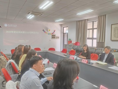 2025年4月25日,由南京审计大学外国语学院与文学院联合举办的2025年访企拓岗暨企业招聘宣讲会在文心楼307会议室成功举办。活动以深化校企协同育人,共筑优质就业平台为主题,特邀江苏省舜禹信息技术有限公司、江苏阿拉丁留学咨询有限公司、上海浦东新区三致教育进修学校等8家来自语言服务、教育培训、信息技术等领域的知名企业代表参会,现场发布三十多个优质岗位,为两院学子搭建起校企双向选择的桥梁。