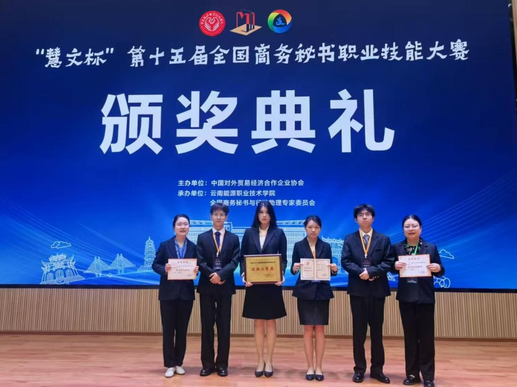 “慧文杯”全国商务秘书职业技能大赛是由中国对外贸易经济合作企业协会主办的全国性赛事,旨在深化秘书专业教育教学改革,提升学生的专业素养和职业技能。比赛项目涵盖专业技能、实践能力和综合素质的考察,自创办以来已成为连续举办时间最长、届数最多、规模最大且影响力持续增长的全国性秘书专业大学生职业技能赛事。文学院代表队克服专业跨度大、新赛项零经验等困难,在此次赛事中交出了一份优秀的答卷,充分展现了AI时代文学院学子的创新性与可塑性。