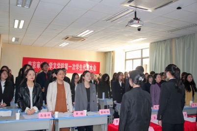 2025年11月5日,文学院第一届学生代表大会在文心楼101教室隆重召开。文学院院长朱军、文学院党委副书记赵艺苑、文学院学生党支部书记董琳钰、汉语言文学专业系主任李佳、2023级汉语言文学班班主任黄培、2024级汉语国教班班主任卞可薇、2025级汉语国教班班主任高惠、2025级汉语言文学班班主任马海洋、文学院分团委书记徐晓宇出席大会。本次大会应到学生代表44名,实到学生代表44名。