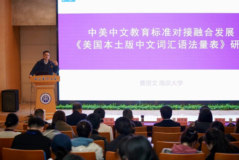 南京大学海外教育学院曹贤文教授在以“中外中文教育标准对接融合发展研究的探索”为题的报告中,系统阐述了《美国本土版中文词汇语法量表》的研制背景与目标。