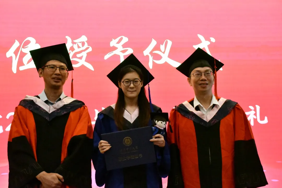 校长陆华良、副校长陈冬华,为文学院研究生代表徐扬颁发学位证书和授予学位。
